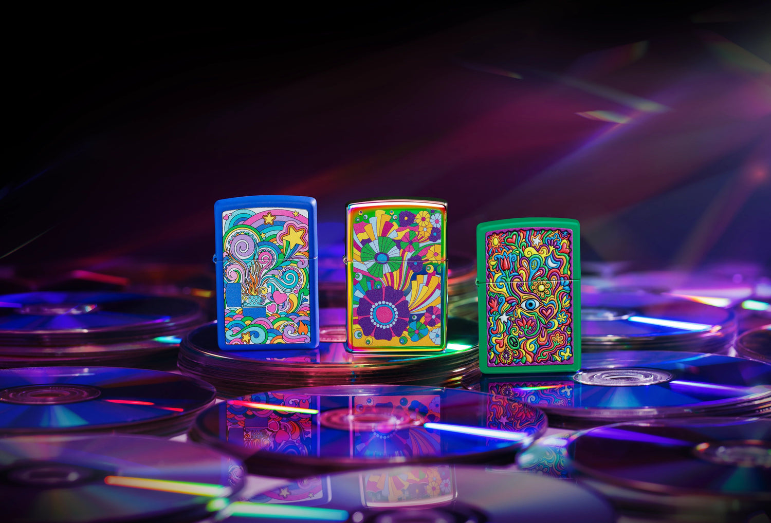 Przyciągająca wzrok kolekcja zapalniczek Zippo z żywymi projektami color image.