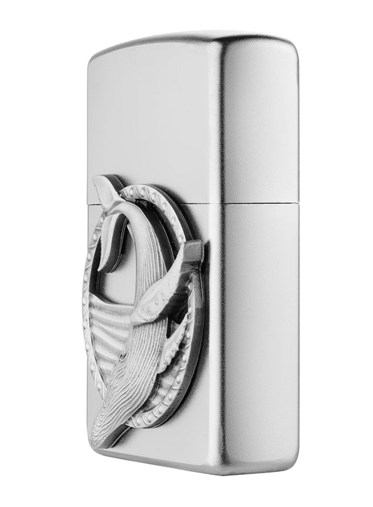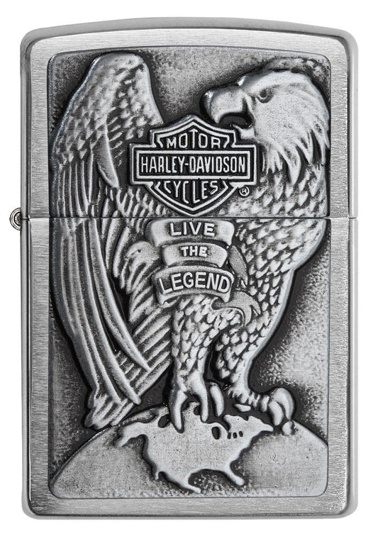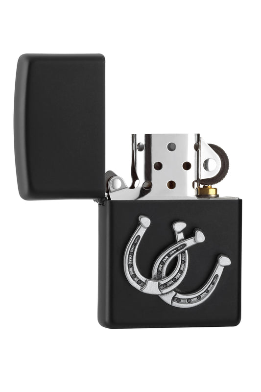 Przyciągający spojrzenia, najwyższej jakości emblemat jest umieszczony na wielu modelach bazowych. Wszystkie, odporne na wiatr zapalniczki Zippo są produkowane w naszej amerykańskiej fabryce w Bradford w Pensylwanii.