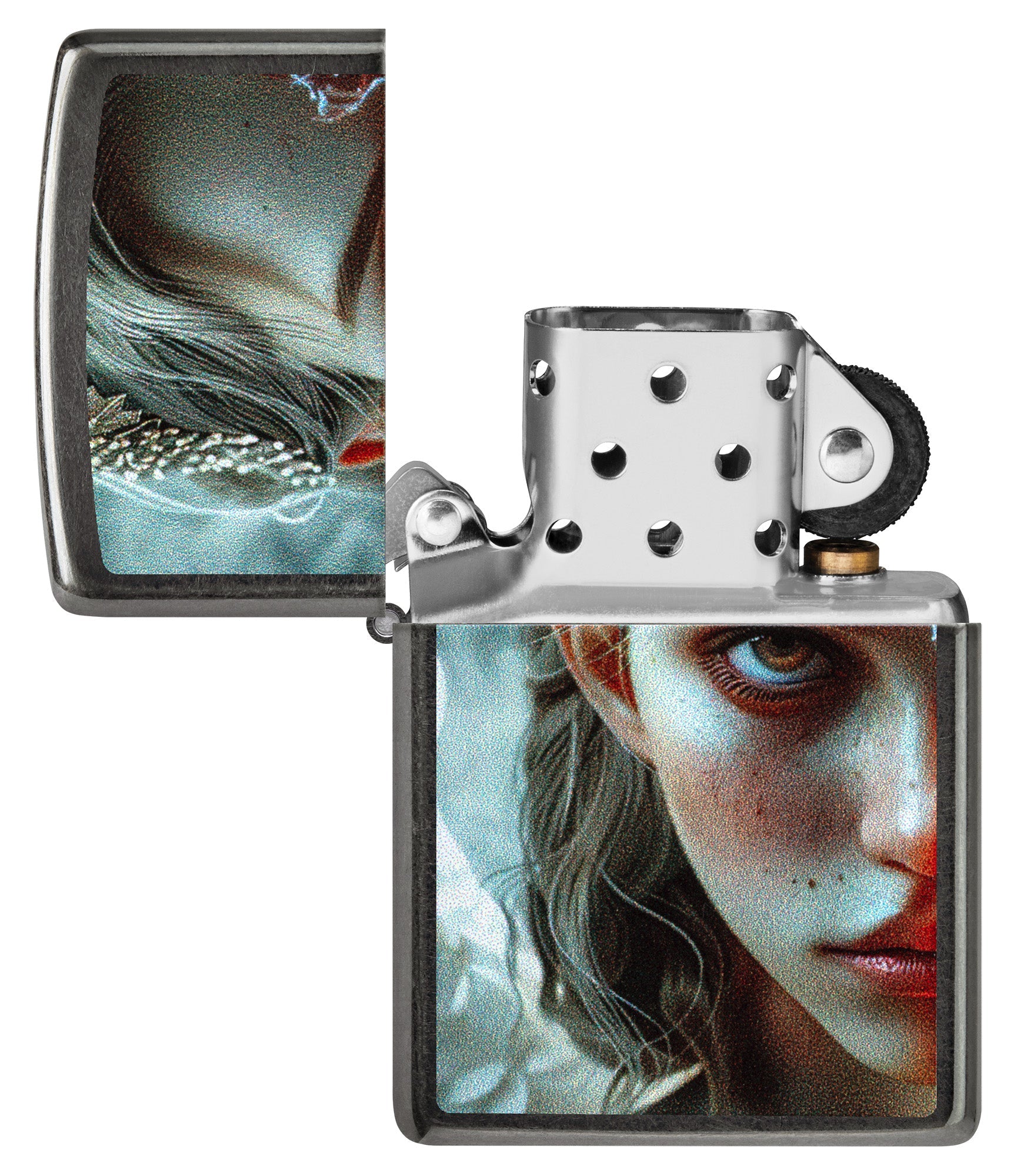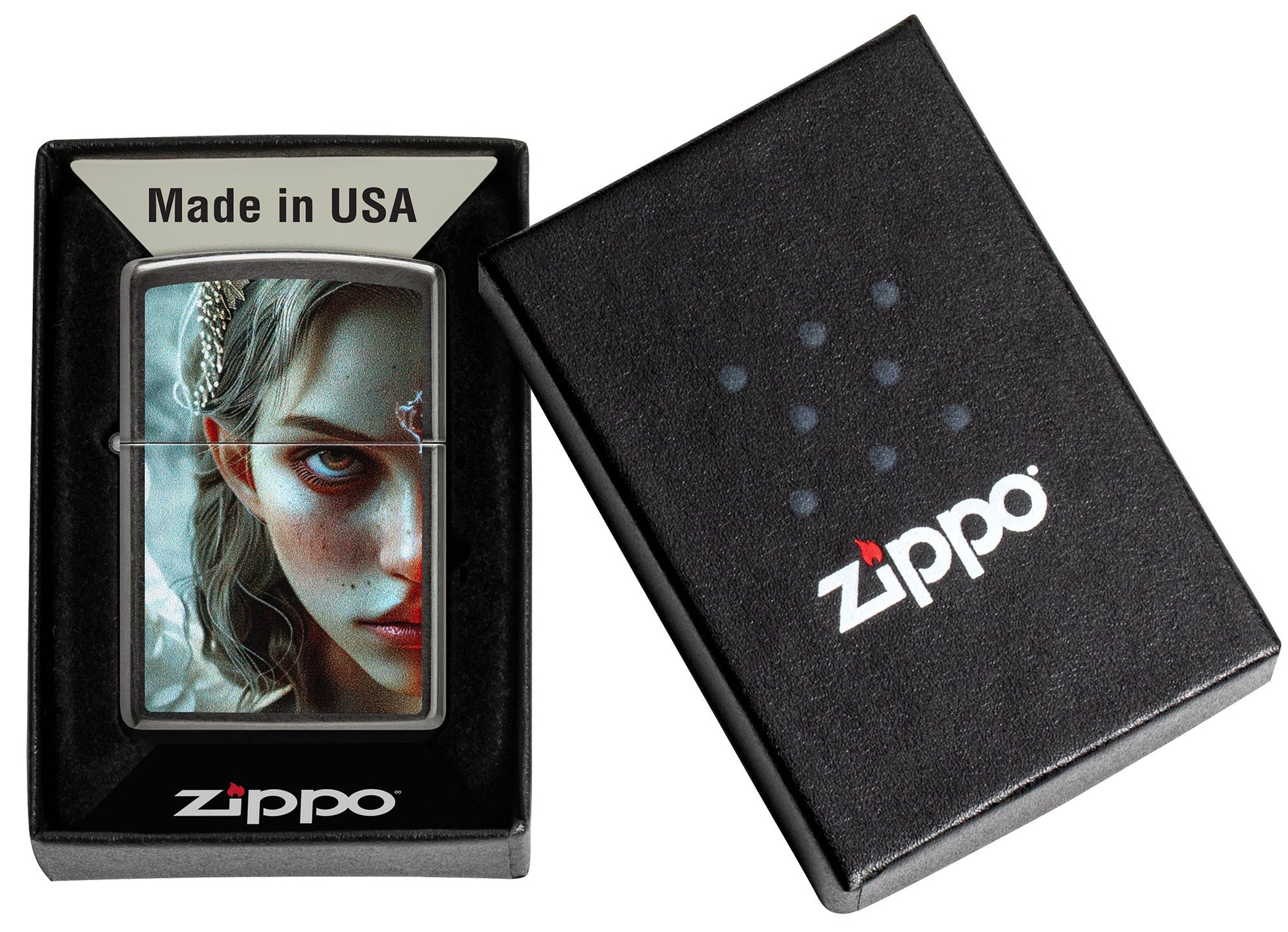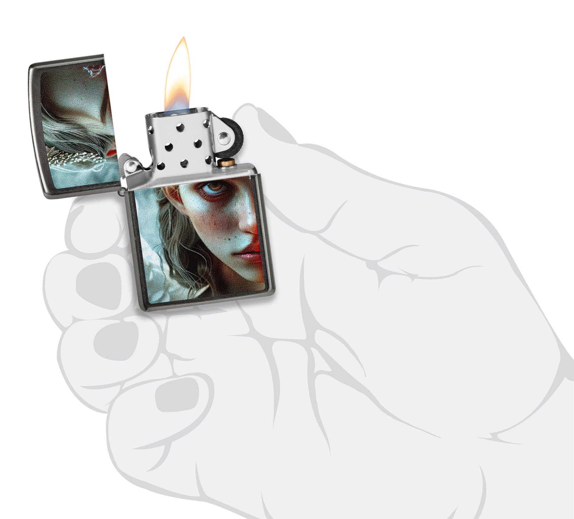 Na tej klasycznej zapalniczce w kolorze szarym został doskonale oddany dualizm ludzkiej natury. Anielska strona widoczna jest z przodu, natomiast diabelska dominuje na odwrocie – obie ukazane w podwójnym wzorze wykonanym techniką nadruku kolorowego.