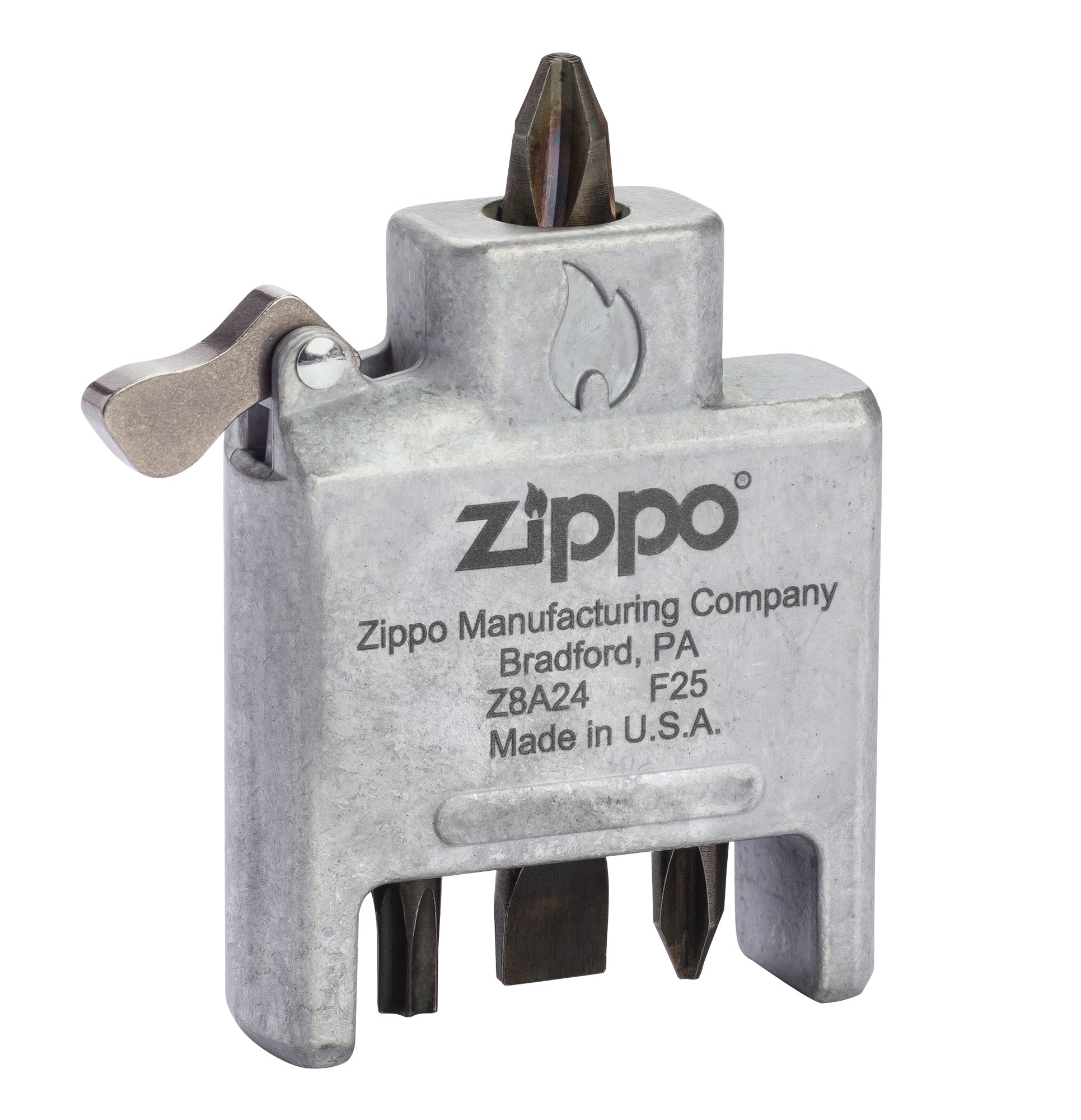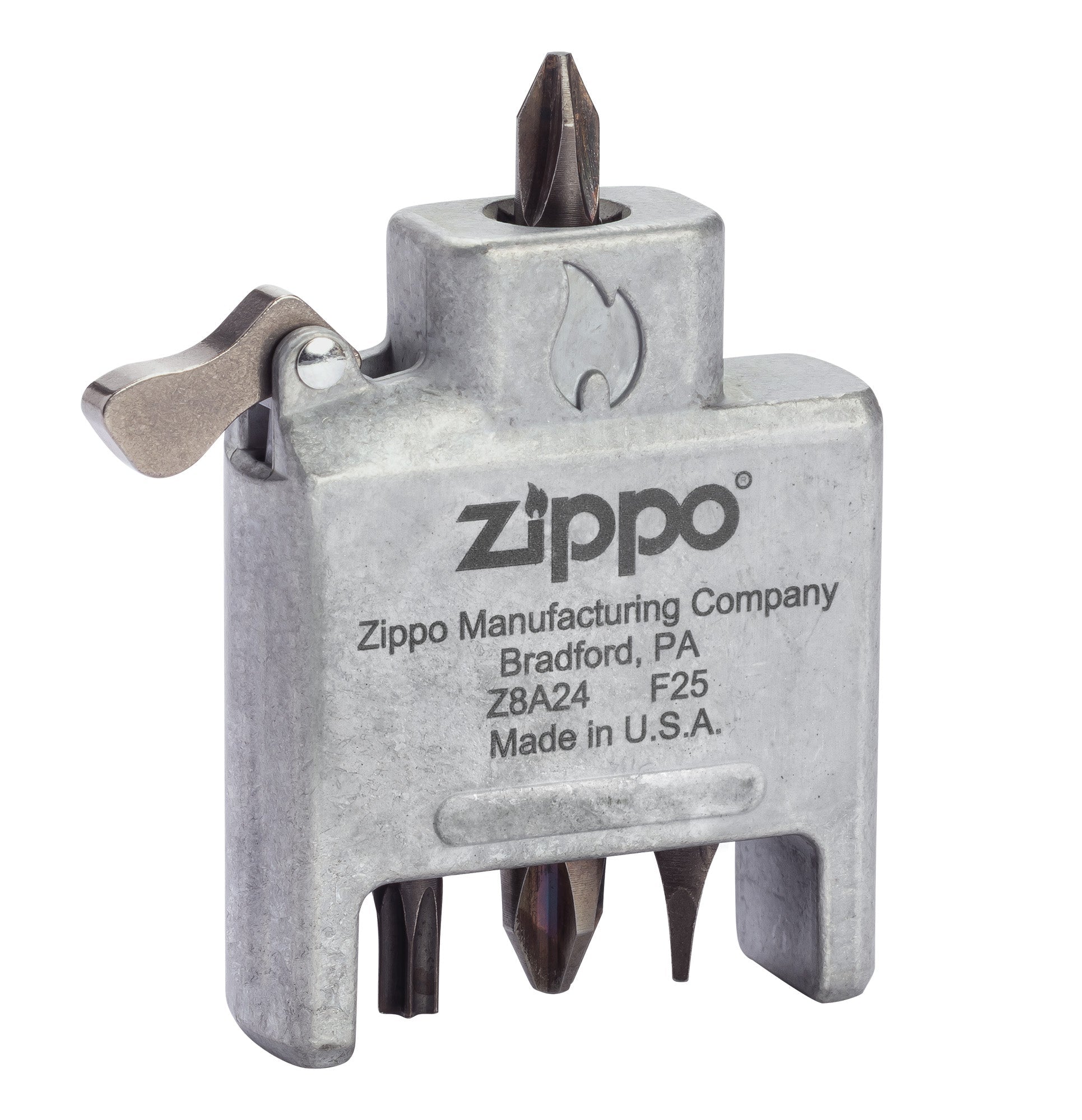 Śrubokręt Bit Safe to praktyczne i kompaktowe narzędzie, idealne do codziennego użytku. Wyjmij wkład 4-w-1 z dedykowanej obudowy o szczotkowanym chromowanym wykończeniu i szybko zamieniaj końcówki śrubokrętowe krzyżakowe, płaskie i Torx, aby poradzić sobie z naprawami w terenie. Śrubokręt znajduje się w opakowaniu upominkowym. Wyprodukowano w USA.