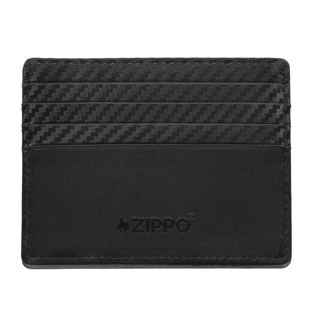 Ten portfel na karty z włókna węglowego marki Zippo sprawi, że codzienne drobiazgi nabiorą cech nowoczesnej stylistyki. Elegancki, oryginalny portfel z naturalnej skóry oferuje kompaktowe miejsce do przechowywania do dziewięciu kart kredytowych, a także subtelne logo Zippo, ochronę przed identyfikacją za pomocą fal radiowych dzięki zastosowaniu technologii RFID i luksusową żakardową podszewkę.