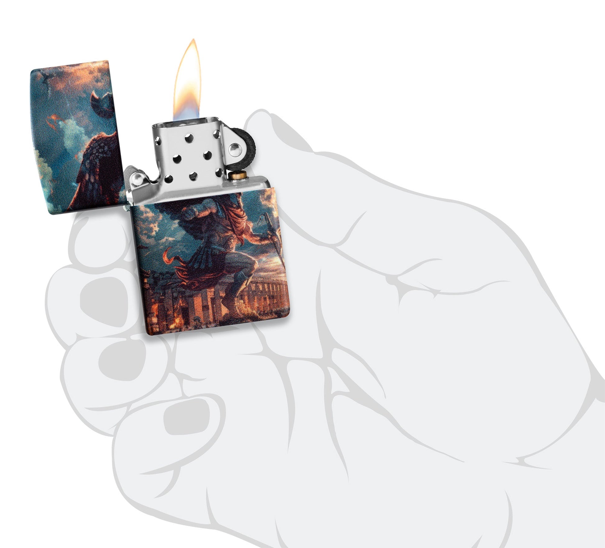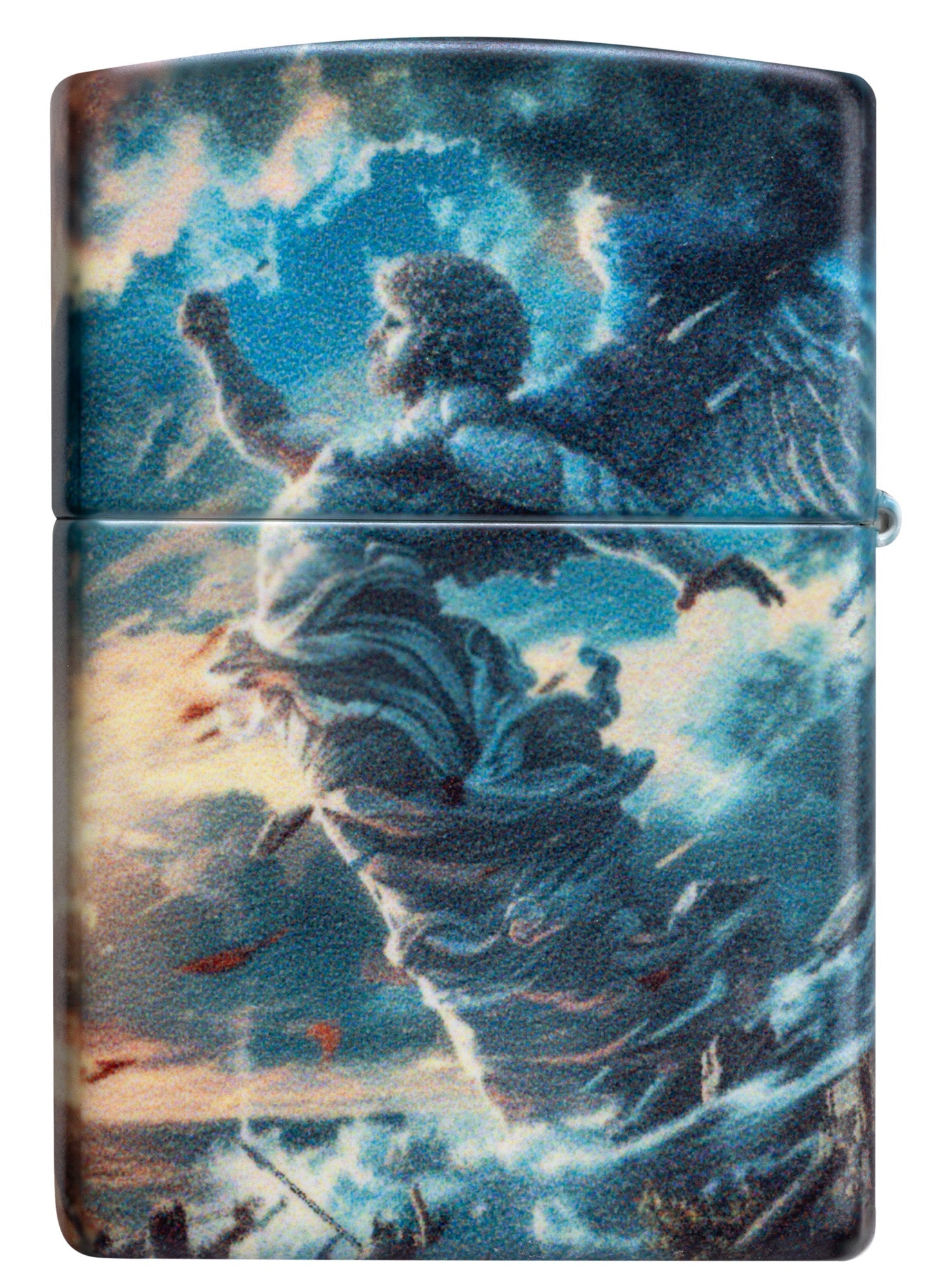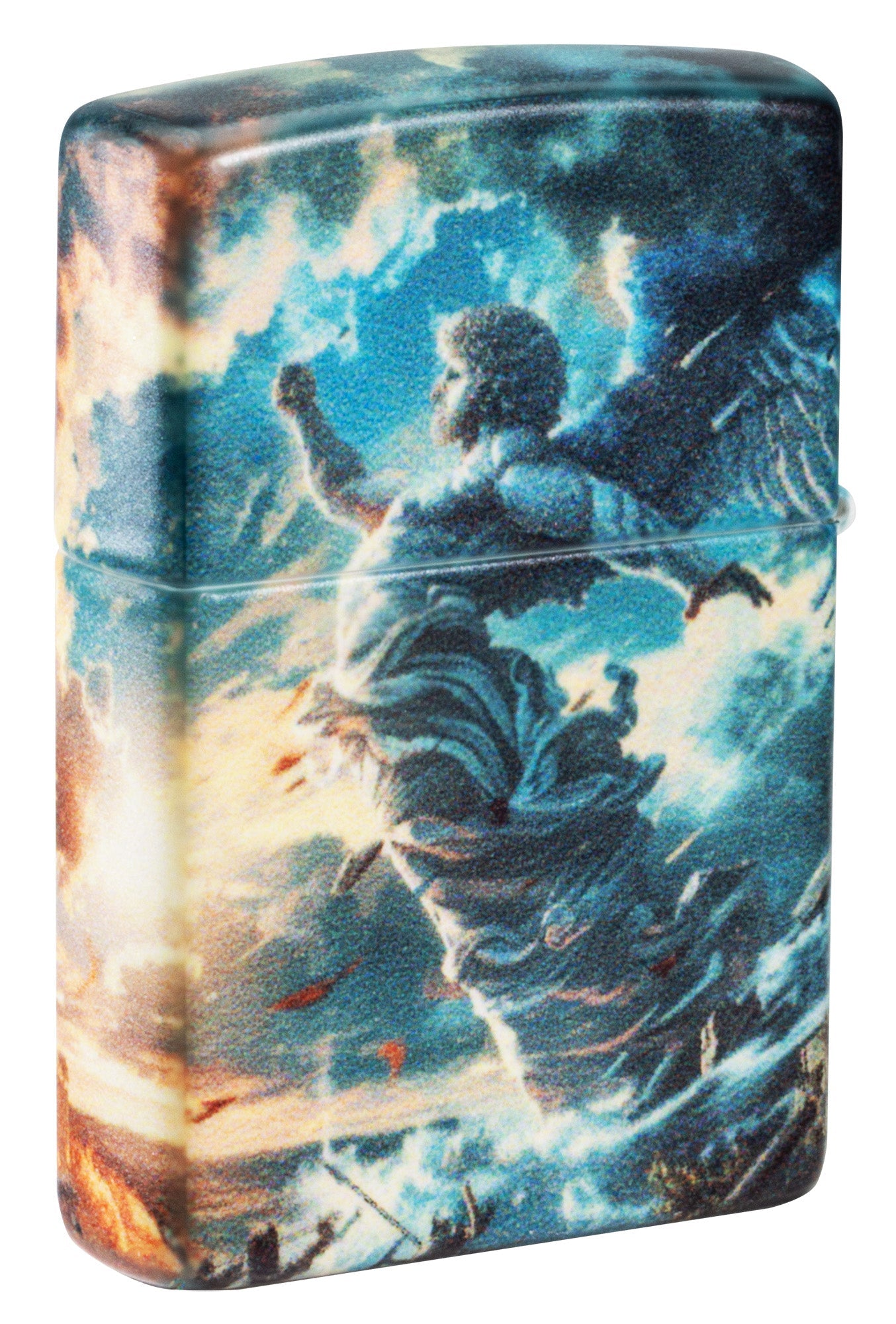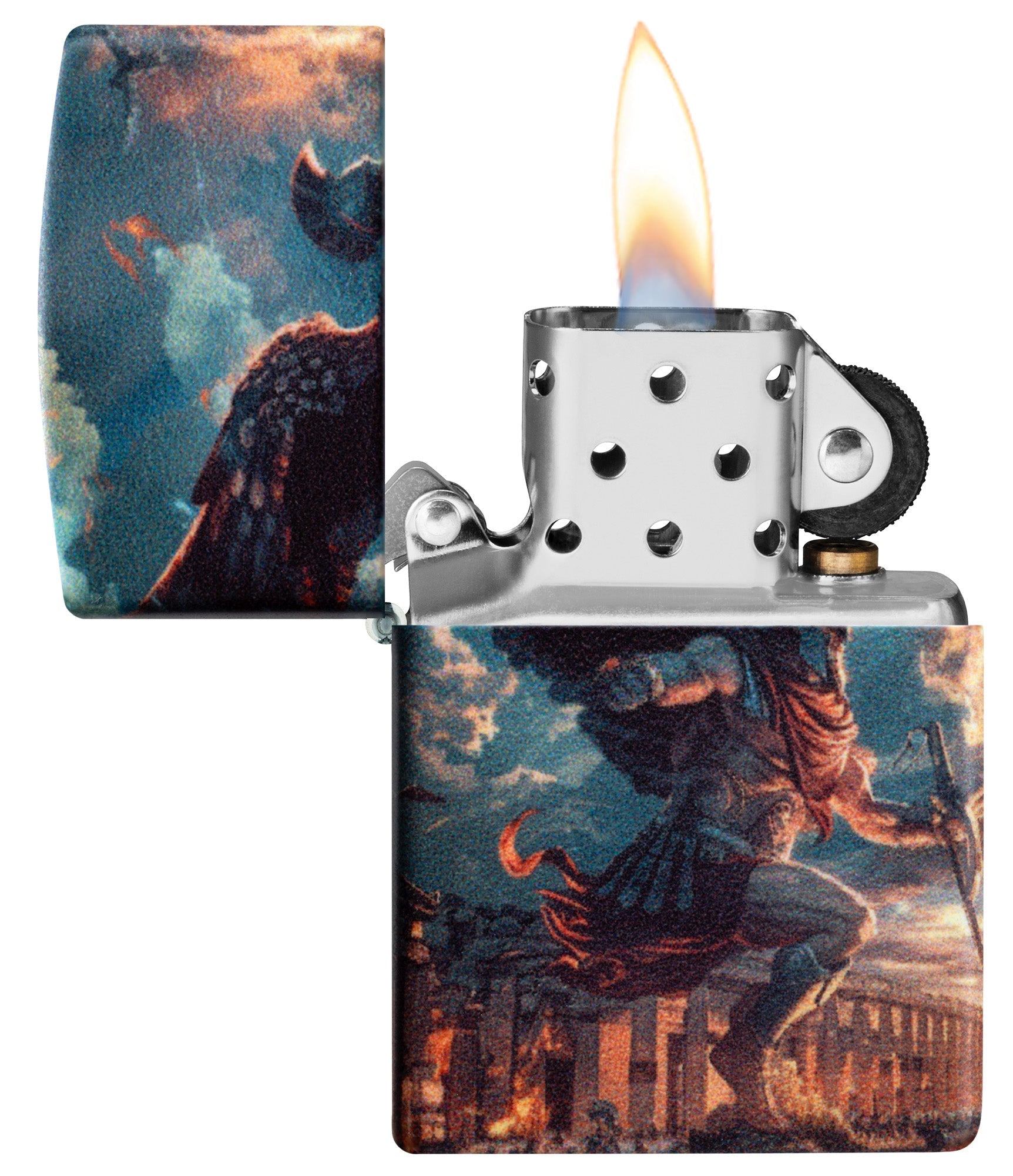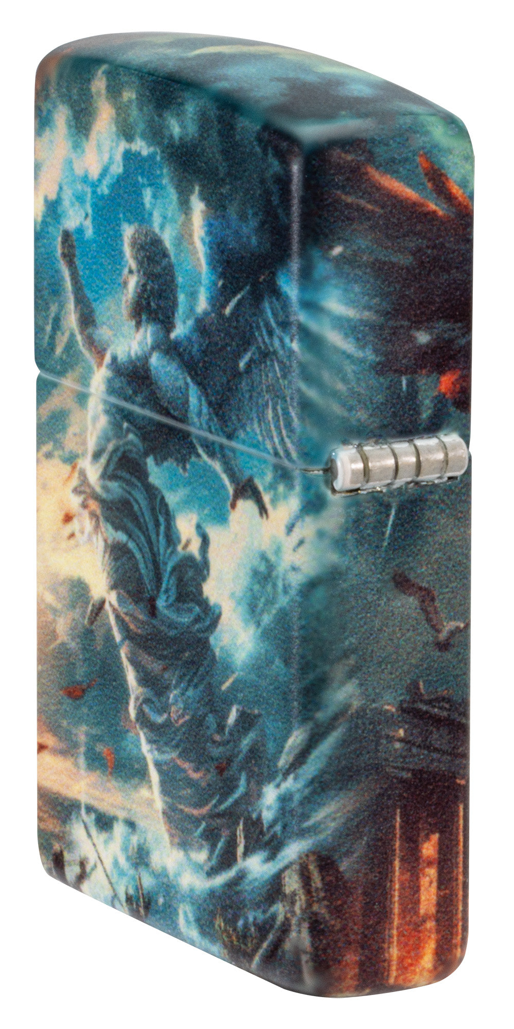 Na wszystkich stronach tej zapalniczki 540 Color Ares, grecki bóg wojny, i Zeus, bóg nieba, toczą ekscytującą, dynamiczną bitwę.