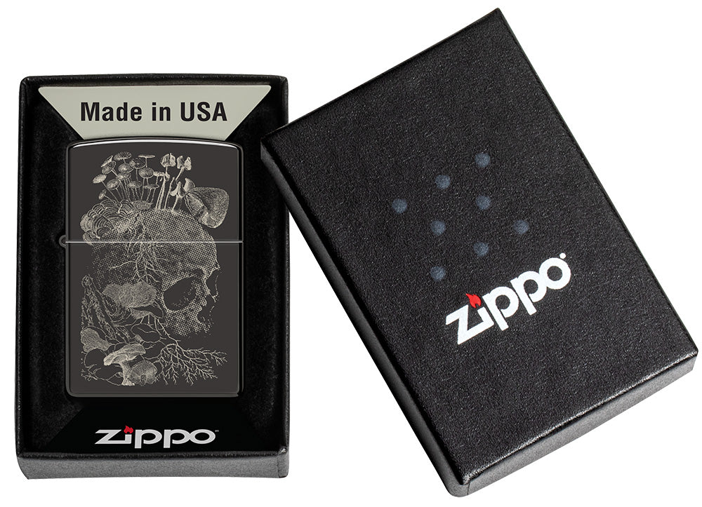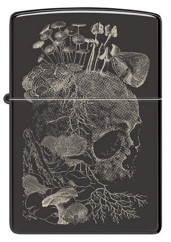 Dzięki obróbce wykańczającej High Polish Black ta zapalniczka oszałamia romantycznym zestawieniem życia i śmierci. Wzór Photo Image przedstawia czaszkę i grzyby z misternymi szczegółami i nieprzerwanie współgra z połyskującym tłem pod spodem.
