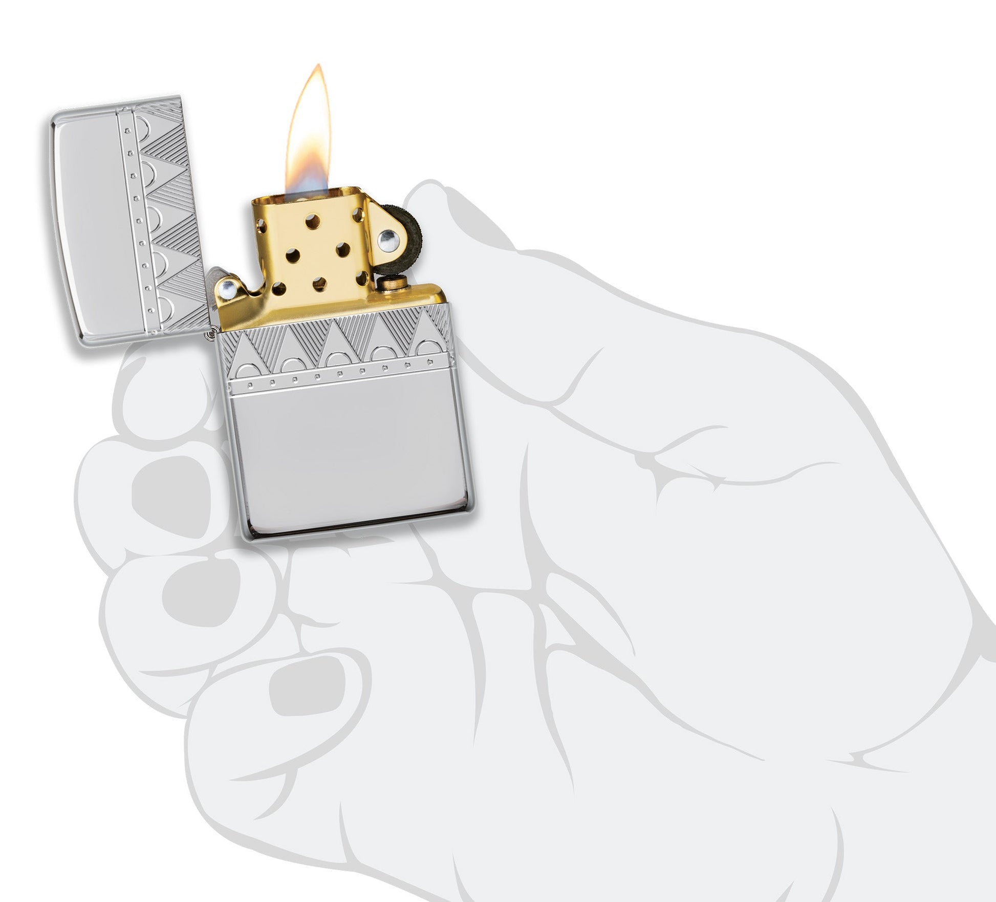 Zapalniczka Zippo Armor® High Polish Sterling Silver wyróżnia się spośród innych dzięki dostojnemu wzorowi rombów, który został precyzyjnie wygrawerowany wokół linii pokrywy przy użyciu metody MultiCut firmy Zippo. Wzór emanuje subtelną elegancją dzięki misternemu układowi linii tworzących pas rombów na wykończeniu. Zapalniczka jest zapakowana w pudełko prezentowe. Aby zapewnić optymalną wydajność, napełnij ją paliwem do zapalniczek Zippo.