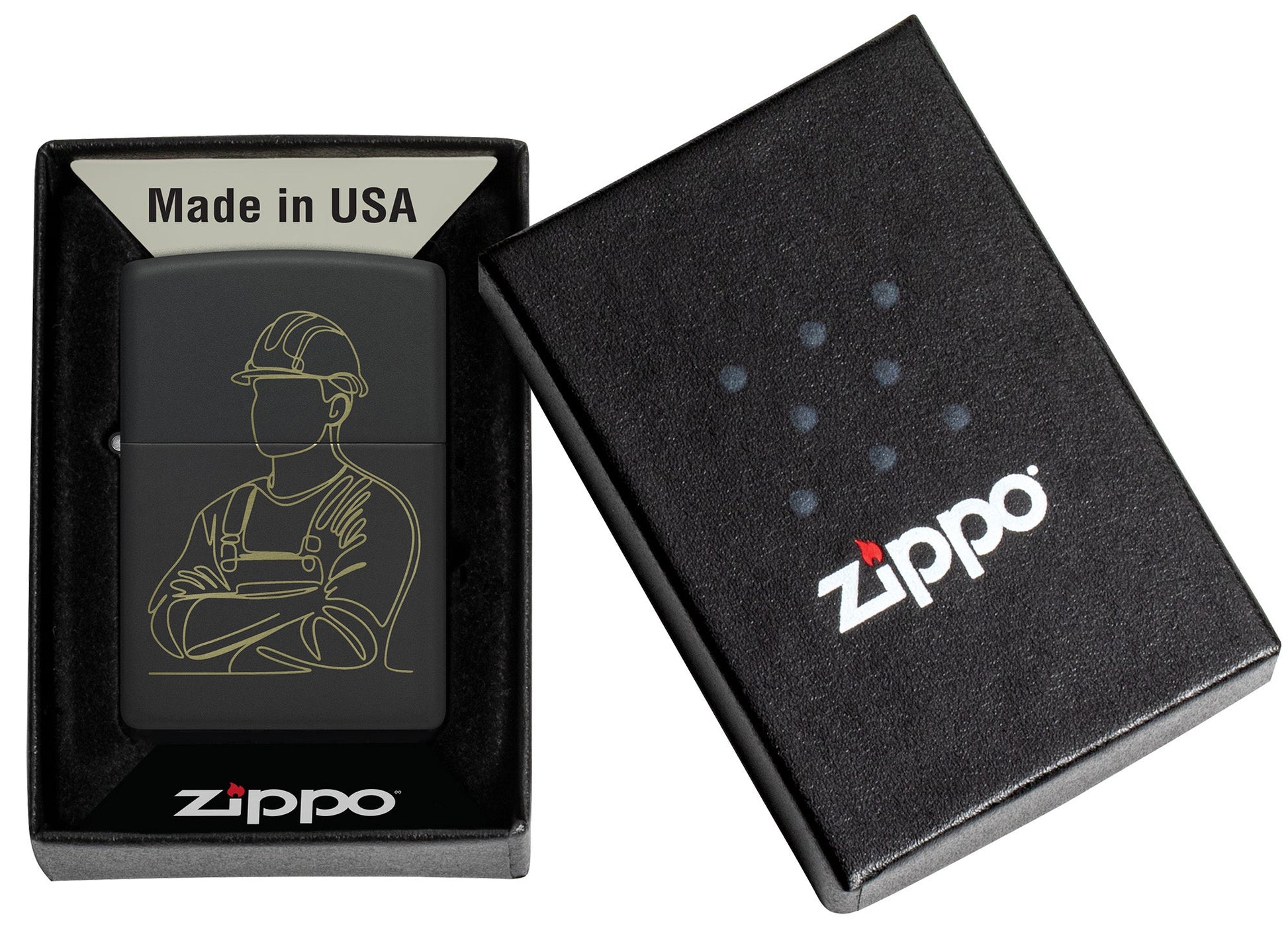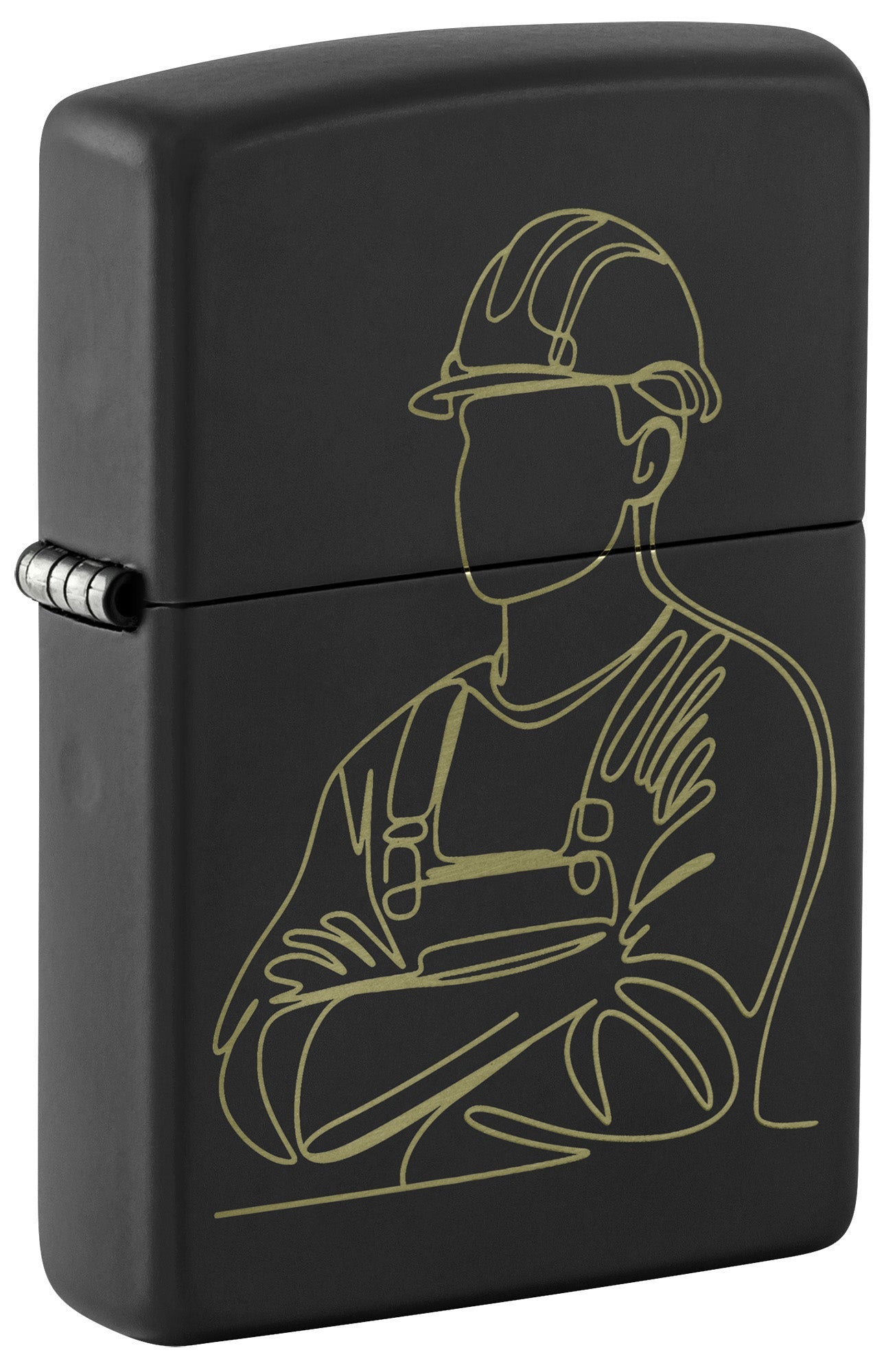 Ta klasyczna, idealna dla każdego fachowca zapalniczka Black Matte oddaje hołd ich pracy minimalistycznym grawerunkiem Laser Engrave z sylwetką robotnika w kasku.