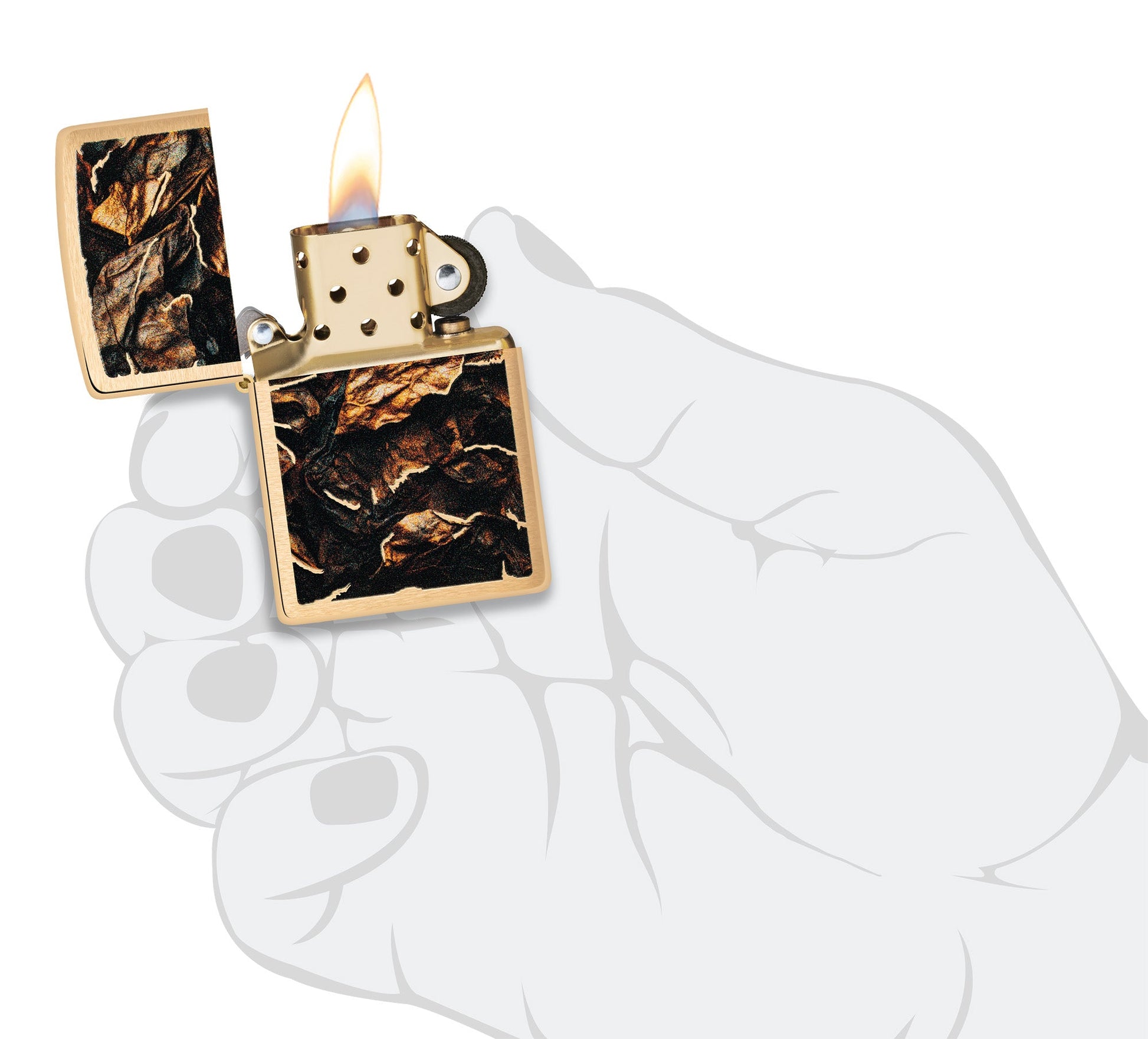 Ta klasyczna zapalniczka Brushed Brass przedstawia bukiet suchych liści w relaksującym wzorze Color Image.