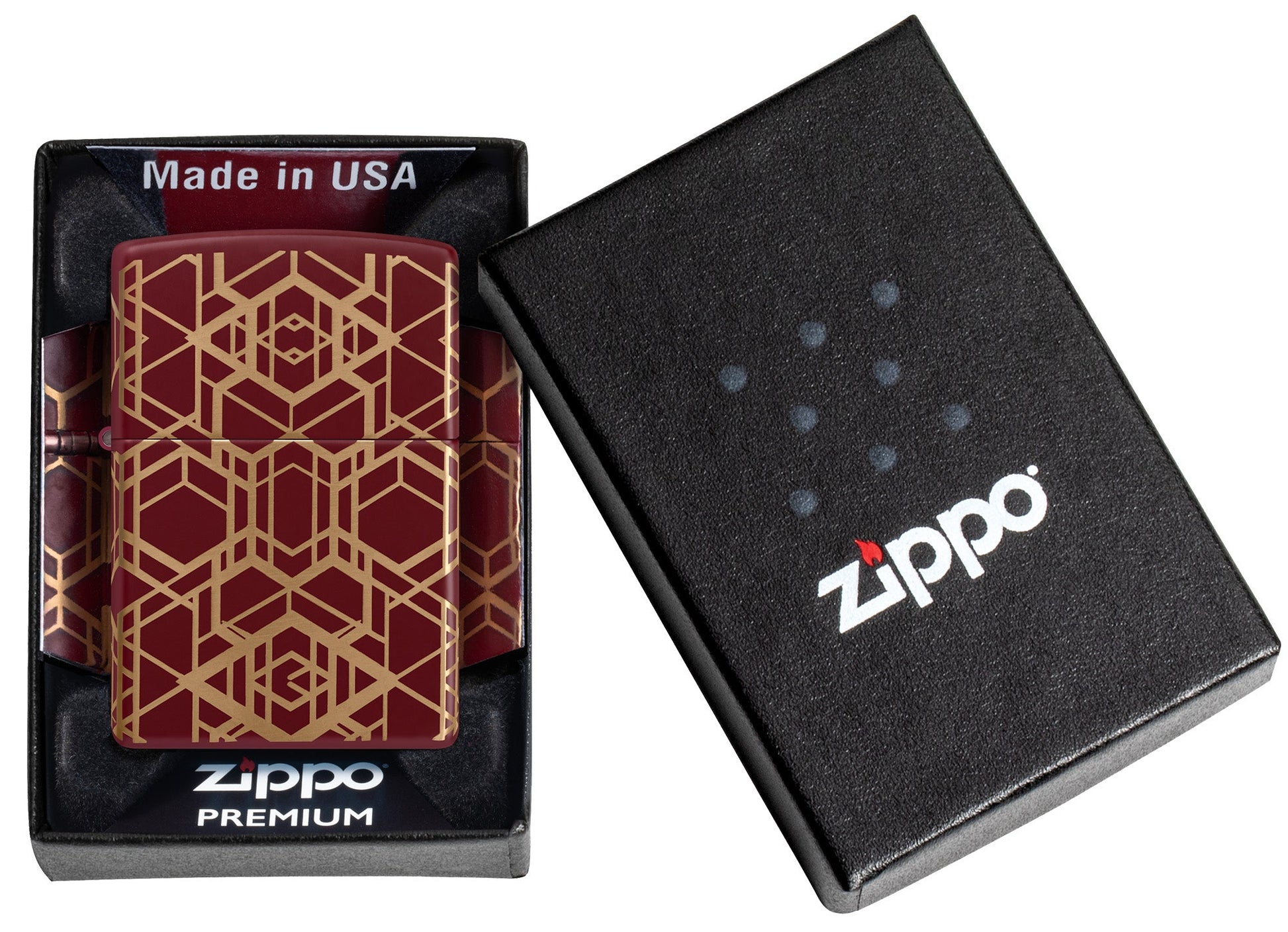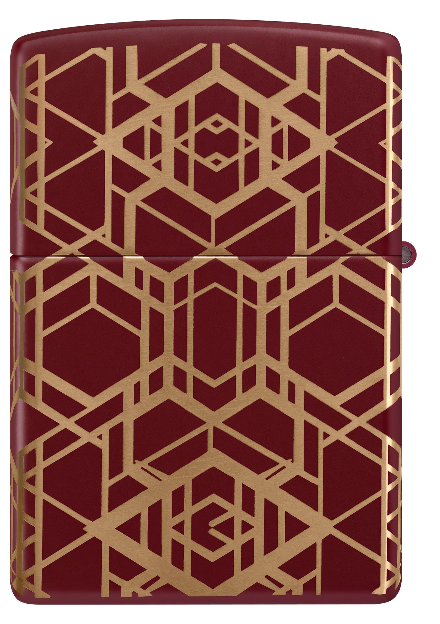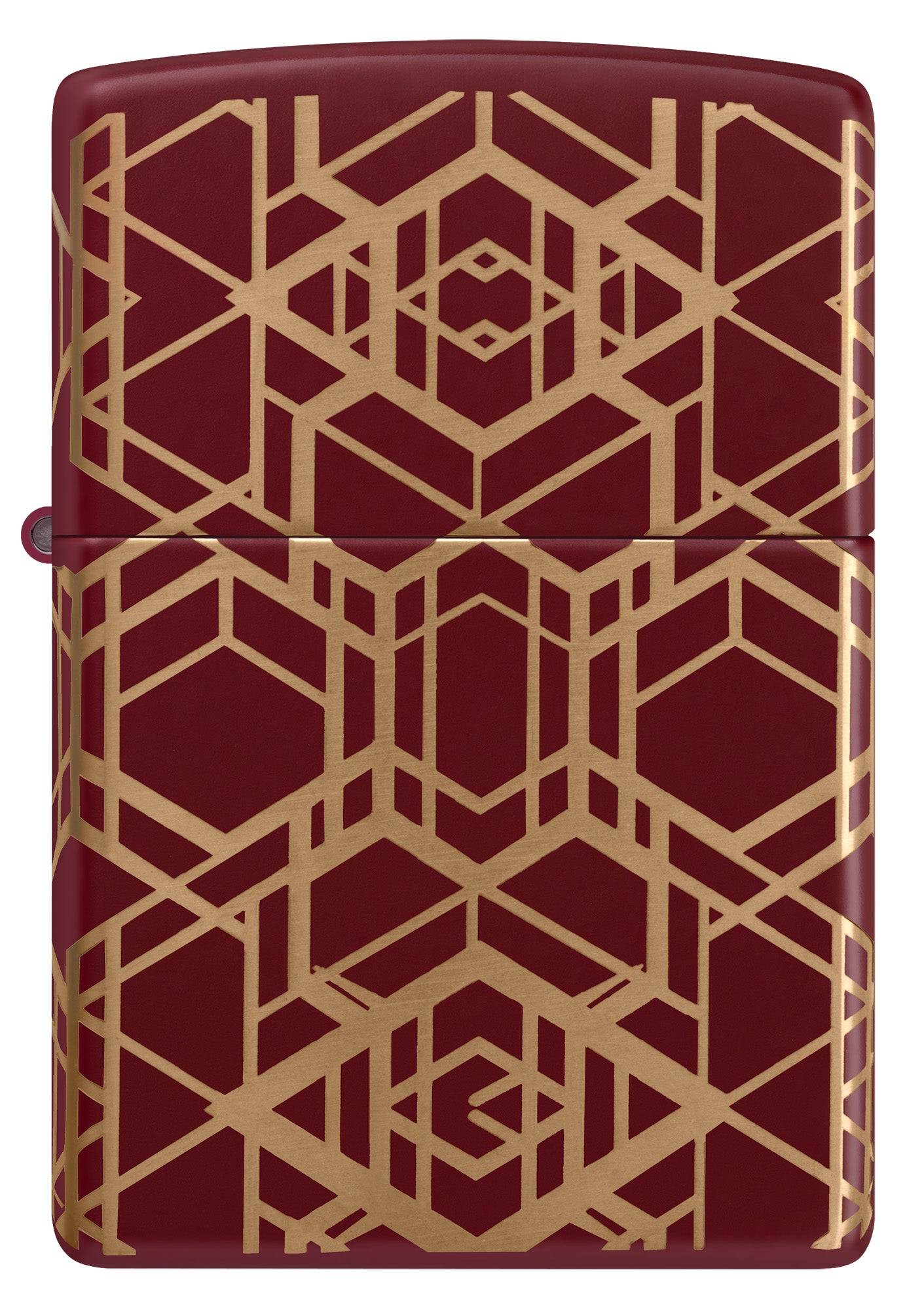 Wszystkie strony tej klasycznej zapalniczki w kolorze Merlot oplatają hipnotyzujące linie w precyzyjnym, płynnym wzorze Laser 360°, odsłaniając błyszczącą mosiężną powierzchnię ukrytą pod matowym wykończeniem.